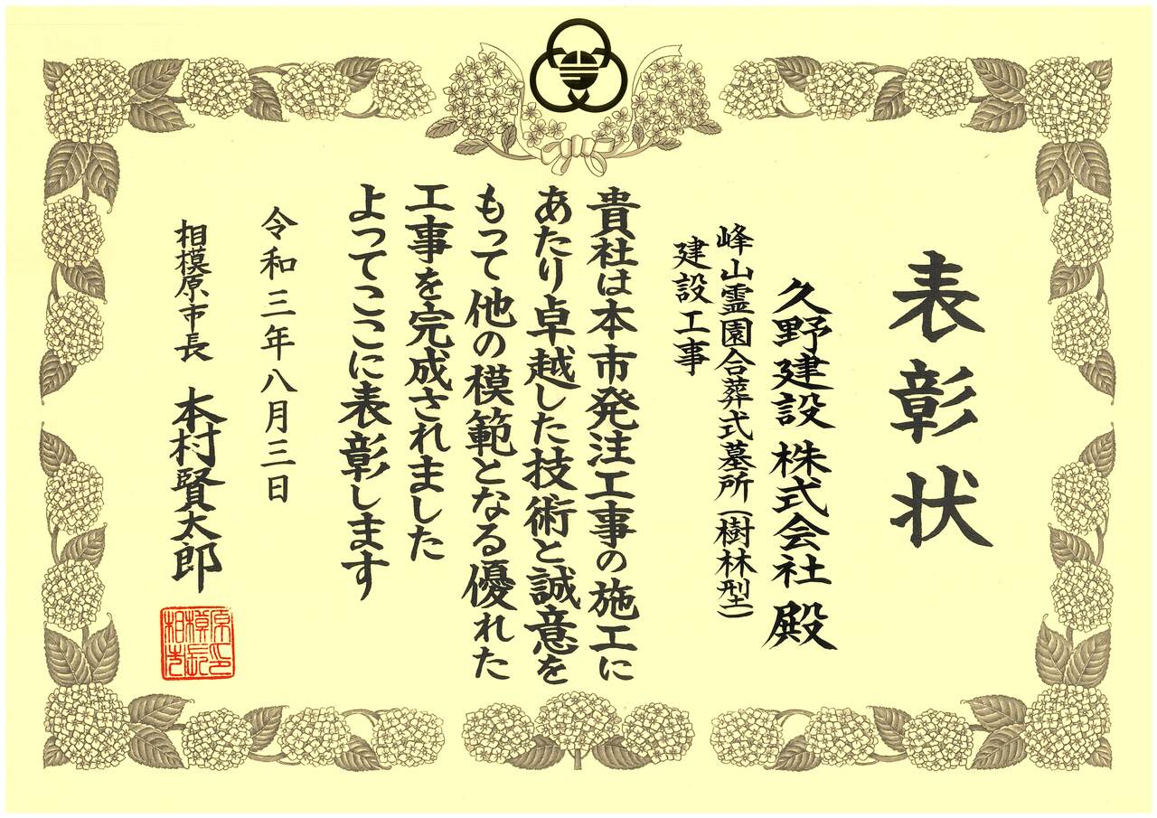 久野建設株式会社は、ISO9001:2015を取得しております。